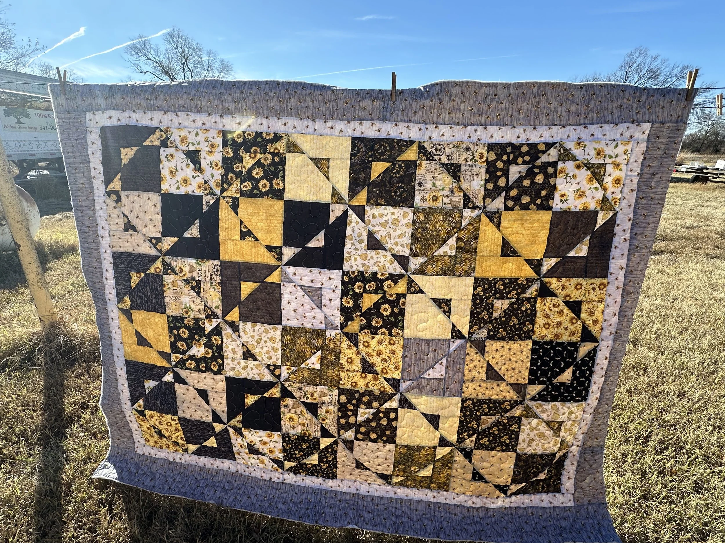 This beautiful quilt was one of the auction items at the 2024 fall meeting. It adds a lot of fun and excitement to our banquet! You don’t want to miss it! We gladly except donations for all of our auction items. 100% of the funds go to our scholarship grant fund. The grant’s purpose is to promote education and the establishment of an apiary in the state of Kansas.